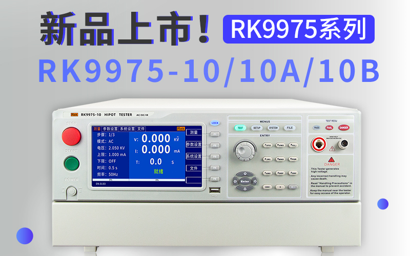RK9975-10/RK9975-10A/RK9975-10B程控超高压测试仪RK9975-10: AC 输出电压:(0.10~10.00)kV 输出功率:1000VA(10.0kV 100mA) DC 输出电压:(0.10~10.00)kV 输出功率:500VA(10.0kV 50mA) IR(定制功能) 输出电压:0.10KV-5.0KV 测试精度:± (3%+5 个字) RK9975-10A: AC 输出电压:(0.10~10.00)kV 输出功率:1000VA(10.0kV 100mA) DC 输出电压:(0.10~10.00)kV 输出功率:500VA(10.0kV 50mA) RK9975-10B: AC 输出电压:(0.10~10.00)kV 输出功率:1000VA(10.0kV 100mA)RK9975-10/RK9975-10A/RK9975-10B程控超高压测试仪 -