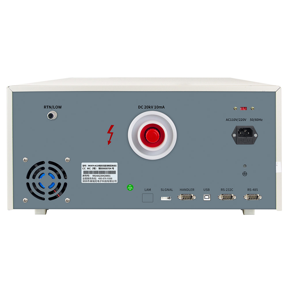 随机标配附件 | 电源线RK00001、RS232 通讯电缆RK00002 、RS232 转USB线RK00003 、USB转方口连接线RK00006 、上位机(官网下载)、高压测试线RK00015、防逆流盒 | ||||