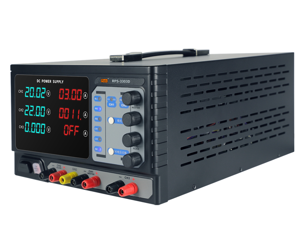 本系列产品有两路可调输出、一路固定输出2.5V/3.3V/5V; 采用纯铜环型变压器,效率高,发热小。无须外接连线即可实现主通道CH1、CH2间的串并联,简化连线,使测试更简便。四位数码屏显示,